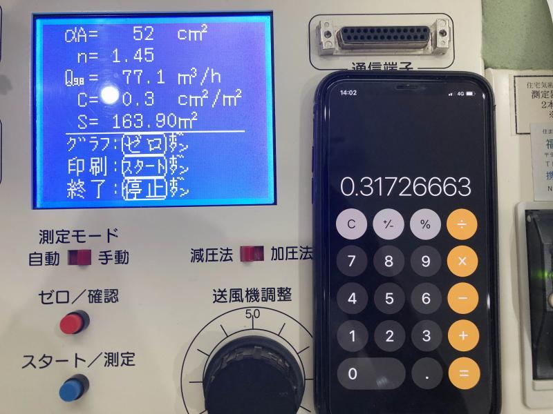 気密測定を行いました。