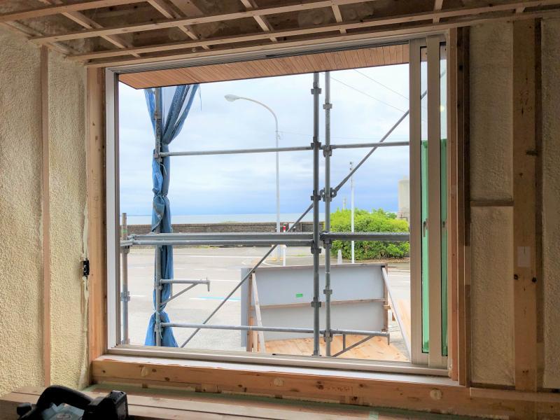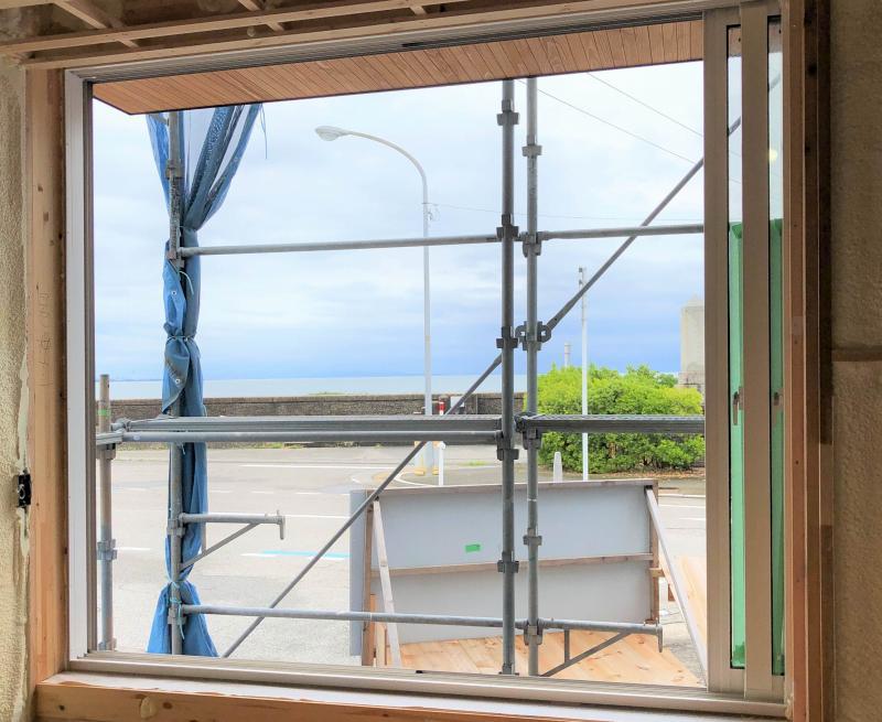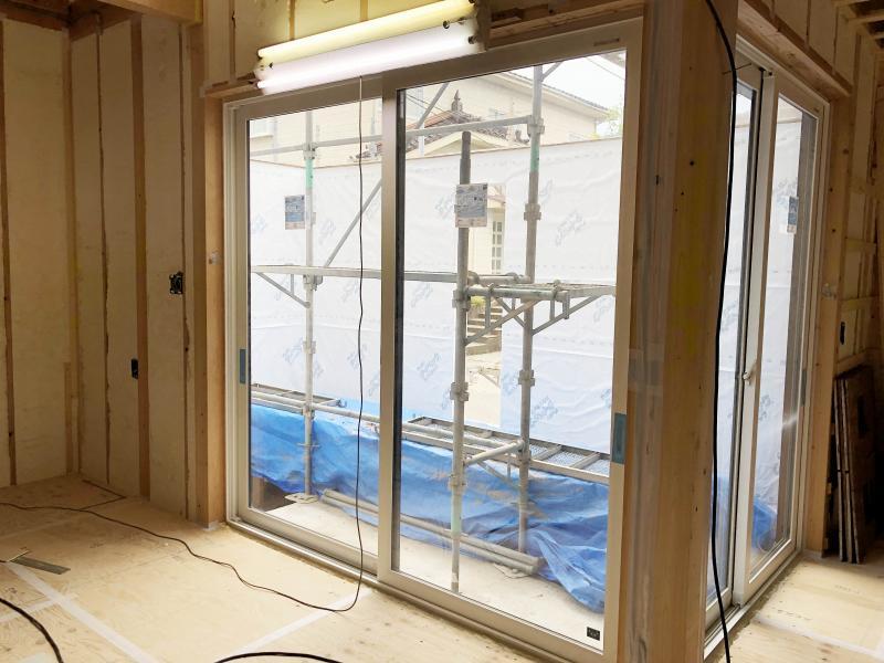 サッシ枠はコーキングで気密処理。
